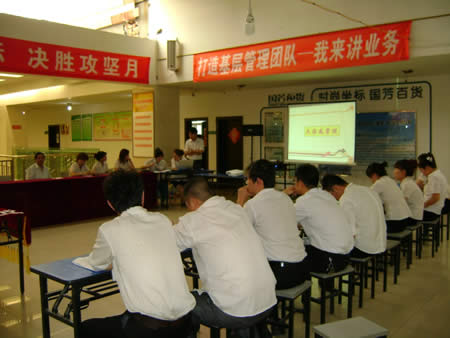 經(jīng)過(guò)兩番試卷考核之后,于2011年6月22日下午15:00時(shí)進(jìn)行了第一場(chǎng)實(shí)操PK賽——我來(lái)講業(yè)務(wù)部分的競(jìng)技。此次比賽均采用現(xiàn)場(chǎng)電腦隨機(jī)抽題,比賽人員現(xiàn)場(chǎng)準(zhǔn)備現(xiàn)場(chǎng)作答。業(yè)務(wù)展示題目涉及到賣(mài)場(chǎng)基層管理人員最核心、最基本的崗位知識(shí)、技能和職業(yè)素養(yǎng),如促銷(xiāo)管理、員工管理、VIP顧客管理、目標(biāo)責(zé)任管理等。