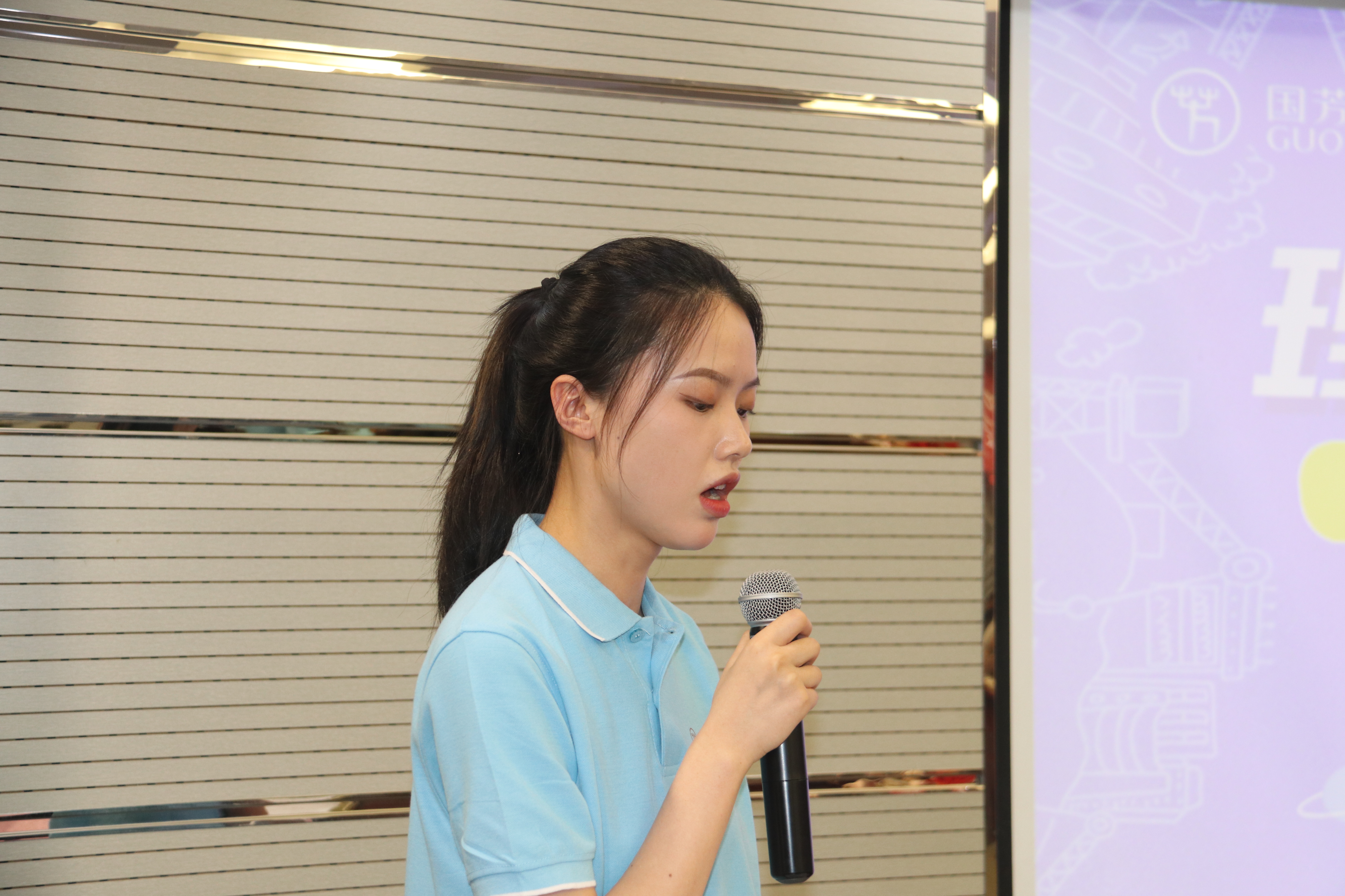 2021屆管理培訓(xùn)生代表馬明月上臺(tái)講話,分享個(gè)人感受并為新一屆管培生送上暖心寄語。同時(shí)現(xiàn)場(chǎng)還播放了往屆優(yōu)秀管培生寄語視頻,充分展現(xiàn)出國(guó)芳集團(tuán)人才培訓(xùn)戰(zhàn)略。