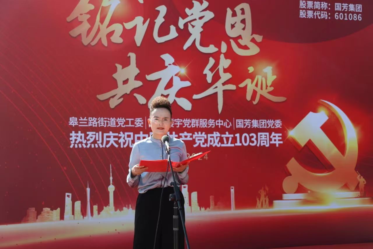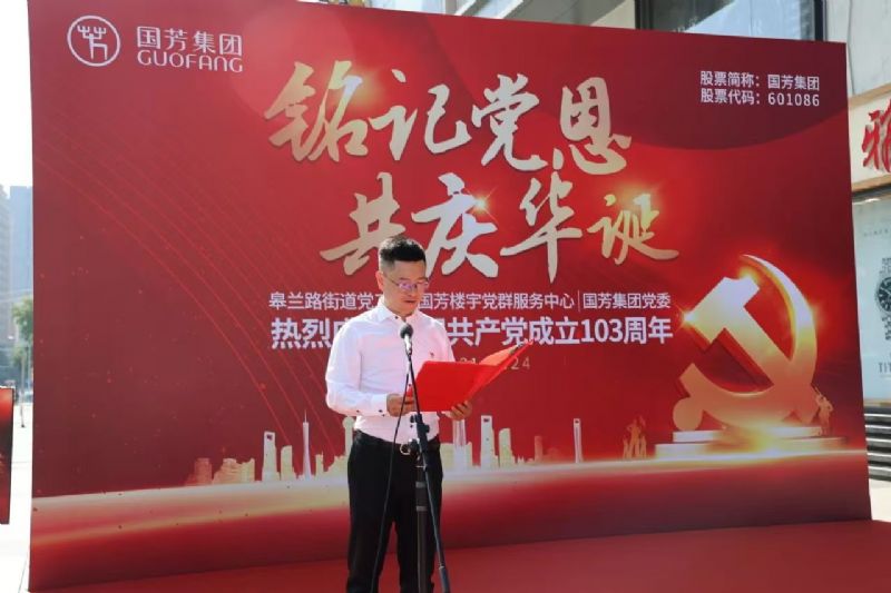 為慶祝偉大的中國(guó)共產(chǎn)黨建黨103周年,進(jìn)一步貫徹落實(shí)黨的二十大精神和習(xí)近平總書(shū)記關(guān)于黨紀(jì)條例學(xué)習(xí)教育的重要講話和指示精神,豐富黨員和員工文化生活,在七一建黨節(jié)即將來(lái)臨之際,國(guó)芳集團(tuán)黨委協(xié)同皋蘭路街道黨工委、國(guó)芳樓宇黨群服務(wù)中心入駐企業(yè)黨組織共同舉辦“銘記黨恩、共慶華誕”慶祝中國(guó)共產(chǎn)黨建黨103周年主題黨日活動(dòng)。