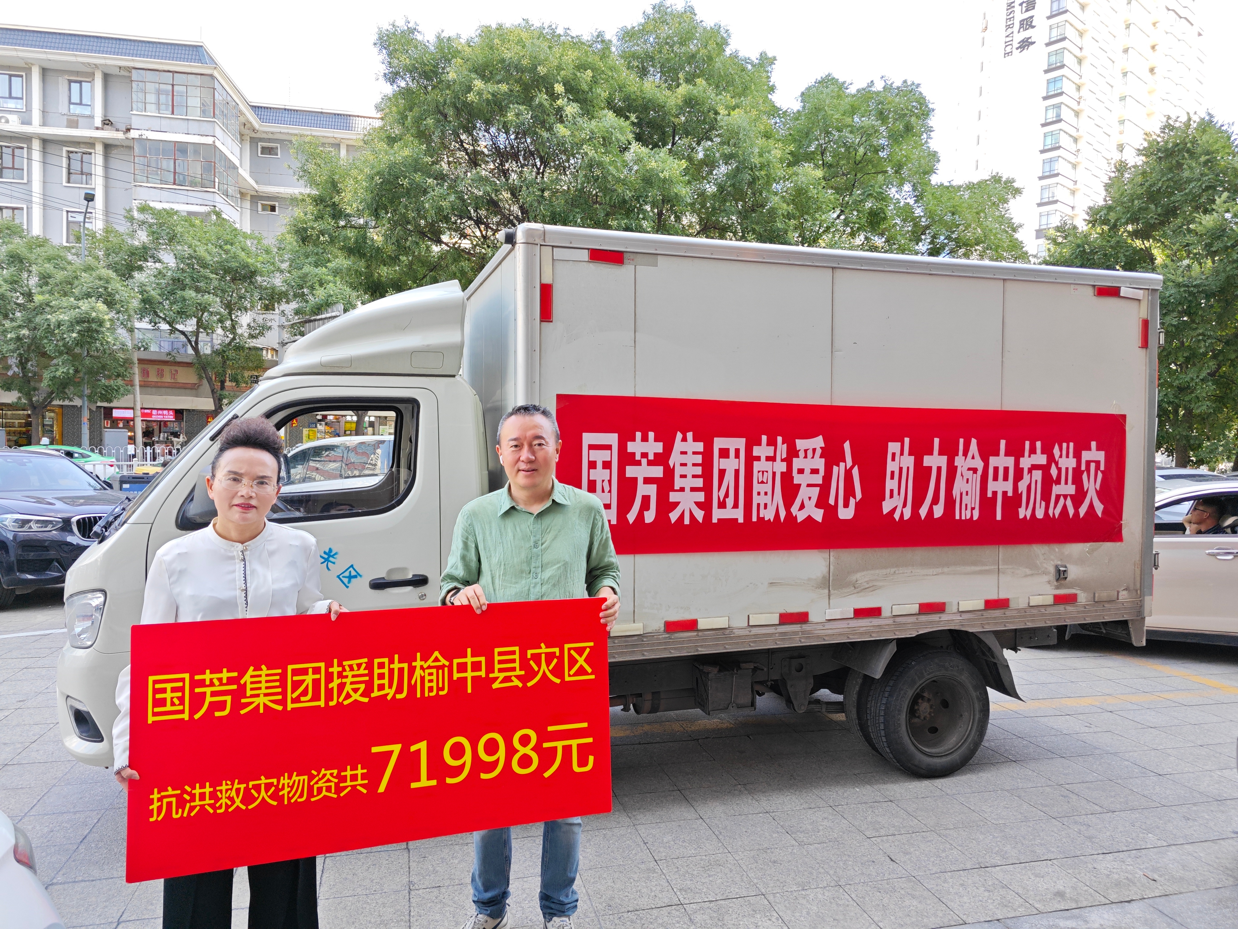 在這場(chǎng)與洪水的戰(zhàn)斗中,社會(huì)各界也紛紛伸出援手,展現(xiàn)出了強(qiáng)大的凝聚力和愛(ài)心。國(guó)芳集團(tuán)作為本土企業(yè),始終心系家鄉(xiāng)人民,積極響應(yīng)政府號(hào)召,在得知榆中縣受災(zāi)的消息后,第一時(shí)間聯(lián)動(dòng)城關(guān)區(qū)商務(wù)局、蘭州市應(yīng)急管理科,緊急籌備救援物資。自熱米飯、方便面、礦泉水等生活物資迅速籌集到位,價(jià)值7萬(wàn)余元的物資承載著國(guó)芳集團(tuán)對(duì)受災(zāi)群眾的深深牽掛和關(guān)切。